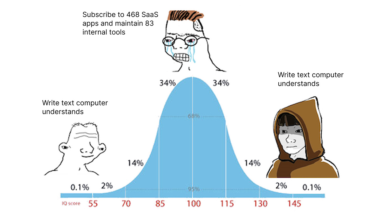 So when AI can do all of that, do apps just collapse into a chat interface? Does all of SaaS go away? Are we going back to early computing, when every computer interaction meant writing in a command-line interface?