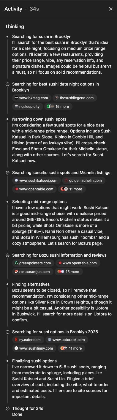 Reasoning models generate a “chain of thought” as intermediate steps to the final output. All of those are output tokens! And all of the websites it reads are input tokens!