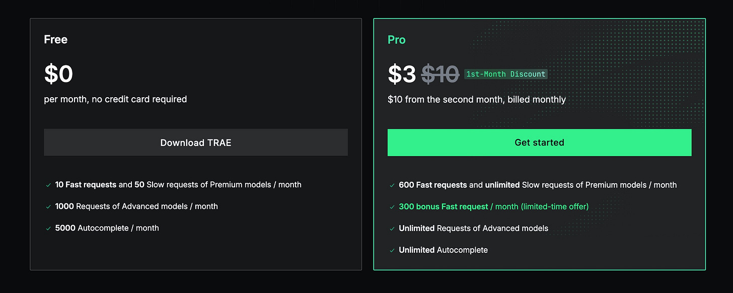 Tools like Trae (an AI coding agent from ByteDance, the owner of TikTok) offer “unlimited slow requests”. This usually means you can make the request, but it’ll take a while to execute. These are cheaper to serve because they use cost-optimized batching, slower infrastructure or wait until compute demand slows and prices drop.